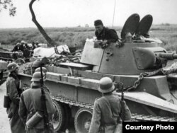 Німецькі і радянські війська на так званому «кордоні миру» – демаркаційній лінії, відповідно до пакту Молотова-Ріббентропа. Вересень 1939 р.