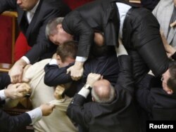У секторі, де сиділи депутати від НУ-НС зав’язалася бійка між представниками опозиції і представниками фракції Партії регіонів. Депутати-регіонали здирали прапори з місць членів НУ-НС та БЮТ.