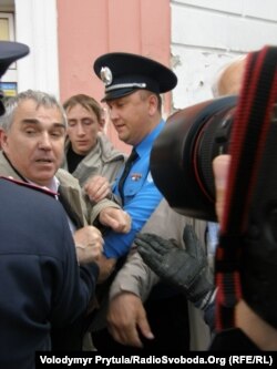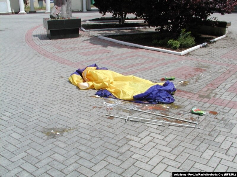 Для В’ячеслава Захарова остання бійка – далеко не перша. На фото він після сутичок із прихильниками НАТО в Сімферополі, травень 2008 року