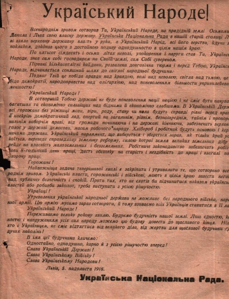«Вже у 1918 році українська община говорила про саме проголошення. Навіть ще не було 1 листопада, про яке ми говоримо як про зрив. Із тих документів, які у нас є, можна дізнатись історію встановлення держави від самого початку», – каже науковець.