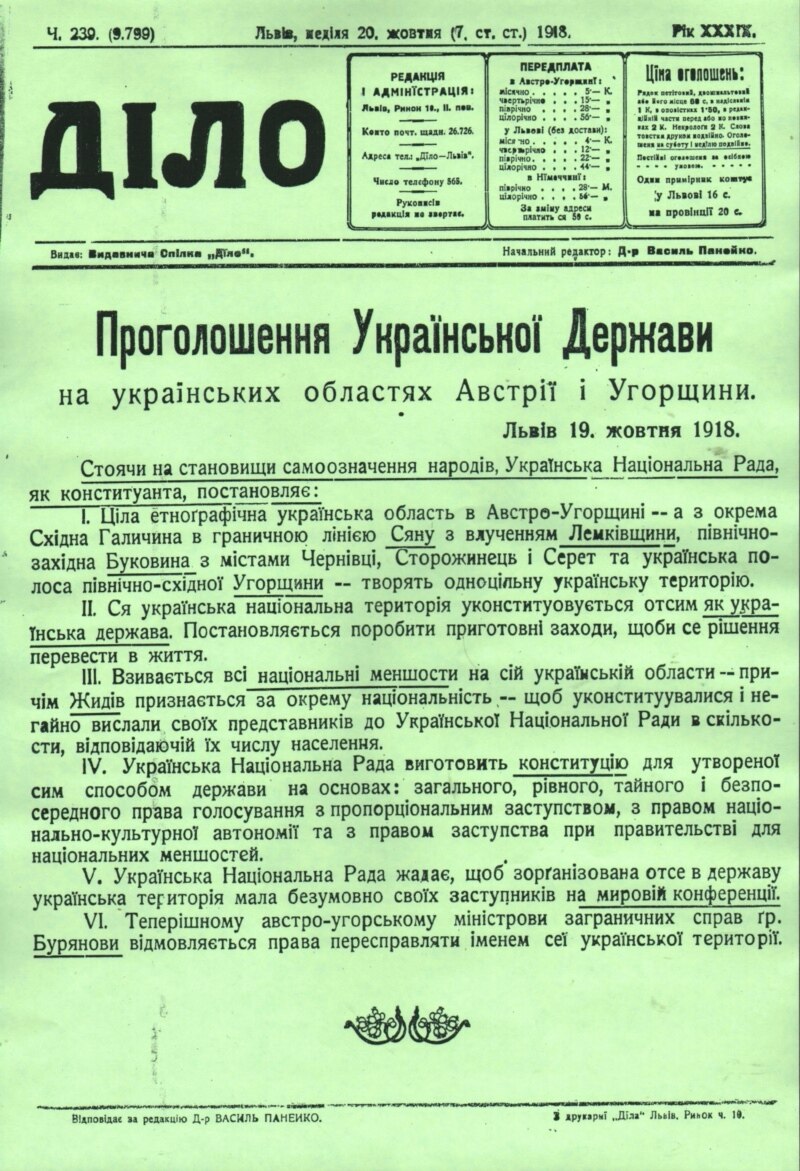 «Ся українська національна територія уконституовується отсим як українська держава. Постановляється поробити приготовні заходи, щоби се рішення перевести в життя», – мовиться в документі.
