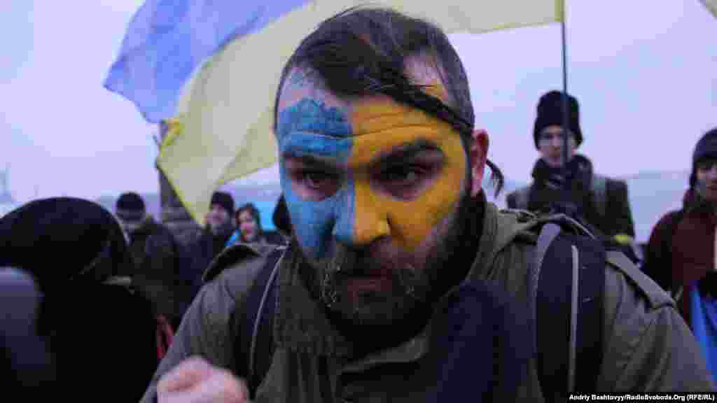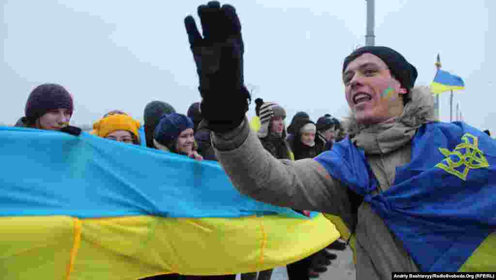 Учасники традиційної акції зустрілися посередині мосту Патона у Києві, розтягнули український прапор та співали національний гімн.