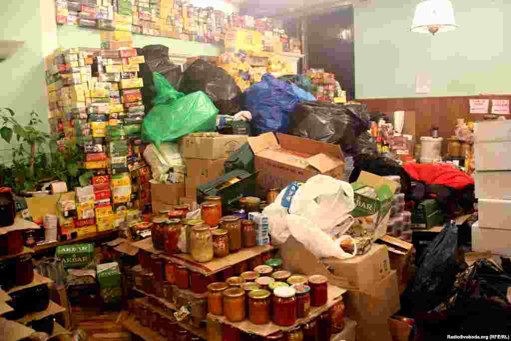 Їдальня Будинку профспілок – основна кухня Євромайдану, не припиняє працювати ні вдень, ні вночі. Сюди зносять продукти, які привозять люди, тут їх сортують і готують з них їжу , двічі на день нові гарячі страви і майже постійно – бутерброди, чай, кава
