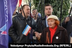 «Геть бандерівську самостійність!» – близько сотні активістів низки проросійських організацій прийшли під стіни кримського парламенту, щоб заявити, що 19 лютого – 60-та річниця рішення про передачу Криму до складу України – не святковий для них день.