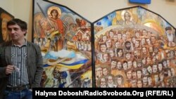 Як повідомляє кореспондент Радіо Свобода, це портрети загиблих майданівців, а також велика ікона-триптих «Небесна Сотня» у формі Небесних воріт, на якій є фігури Матері Божої, Архистратига Михаїла та 78 зменшених портретів Героїв Майдану.