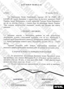 Археологічні дослідження на Радіальній, 5 проводилися. Однак уже після того, як працівники заповідника повідомили про роботи. Ось договір, укладений між Порошенком та Інститутом археології НАН України від 3 грудня 2012 року.
