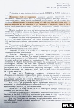 Виникає питання: чи законно було змінено цільове призначення цієї земельної ділянки? В Управлінні охорони культурної спадщини Мінкультури України пояснили, що такі питання вирішуються на рівні парламенту. Але історія таких випадків не знає.
