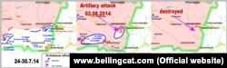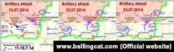 «Використовуючи супутникові знімки та інформацію з соціальних мереж, ми змогли встановити, що у липні Росія обстрілювала територію України з артилерії, допомагаючи сепаратистам, які в той час наступали», – розповів Радіо Свобода засновник Bellingcat Еліот Хіґґінс.