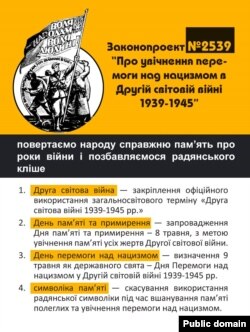 – Так. Поняття Велика вітчизняна війна відтепер не буде використовуватися в законодавчому полі, його замінять історично адекватним терміном Друга світова війна, тому що вона охоплює ширший період, тому що вона не містить цього ідеологічного пропагандистського навантаження, яким є термін Велика вітчизняна війна, вигадана радянською пропагандою.