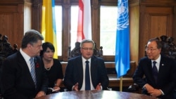 Президент наголосив, що присутність генерального секретаря символізує єдність всього світу з Україною. Пан Ґі Мун запевнив, що ООН підтримуватиме Україну в її боротьбі за мир, безпеку та незалежність. Дев’ятого травня він планує побувати і в Москві – на урочистостях з нагоди Дня перемоги.