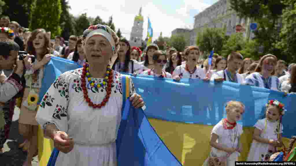 У неділю, 24 травня, у Києві відбувся вже традиційний 15-й Мегамарш у вишиванках. Кияни у національних сорочках зібрались біля Золотих Воріт і, після короткого відкриття, вирушили ходою через Софіївську та Махайлівську площу до арки Дружби народів.