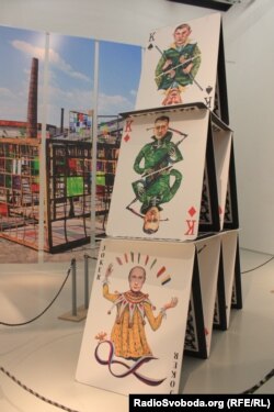 Під час перформансу під назвою «Картковий будиночок» відвідувачів запрошують спочатку роздивитися величезні ігрові карти з карикатурами на горезвісних ватажків та бойовиків – Олександра Захарченка, Ігоря Плотницького, «Моторолу» та інших. В основі будиночку карта джокера – це російський президент Володимир Путін.