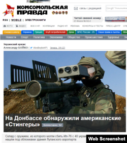 Російські та проросійські видання повідомили у четвер про те, що на території аеропорту Луганська знайшли склад нібито із «американською» зброєю та боєприпасами. Зокрема звернули увагу на буцімто систему ПЗРК «Стінгер». Пізніше блогери і військові експерти засумнівалися в автентичності зброї на відео. Військовий експерт у коментарі для Радіо Свобода припускає, що це муляж.