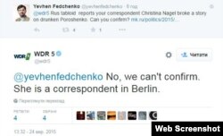 Представники німецької радіостанції WDR5, на яку послались російські ЗМІ, спростували причетність журналістки Христини Нагель до такої «новини». На запитання від порталу Stopfake.org, який бореться із неправдивою інформацією про події в Україні відповіли: «Західнонімецька телерадіокомпанія Westdeutsche Rundfunk /WDR не підтверджує подібну заяву. Ні Христина Нагель, ні будь-який інший наш кореспондент, не говорили нічого подібного».