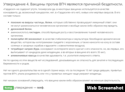 Далі читаємо, що буцімто є 7 фактів про те, чому не слід погоджуватись на вакцинацію «Гардасил». Серед них – і той, що «Гардацил» буцімто спричиняє безпліддя.