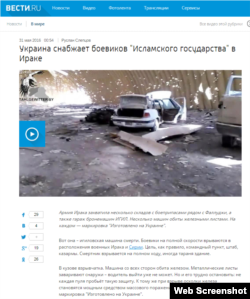 Цими днями російські ЗМІ повідомляли, буцімто Україна є прямим постачальником бойовиків угруповання «Ісламська держава» в Іраку. Про це нібито свідчать сталеві листи із маркуванням «Made in Ukraine», продемонстровані на відео. Однак, як пояснив Радіо Свобода експерт, сталеві листи, що виготовлені в Україні, могли потрапити на територію Близького Сходу опосередкованим чином.