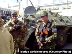 Также провели то, что назвали «парадом». На него приехали целых два грузовика и один БТР. Каждый мог сфотографироваться, обнять «своих защитников». Были женщины, бросавшиеся на шею этим людям, и слезно их благодарили. Я чувствовала себя чужой на этом празднике жизни.