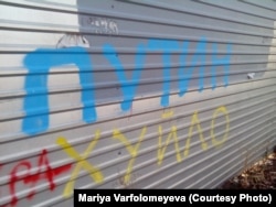 Такие граффити еще долго были при «новой власти» Донбасса. Очень ярко характеризуют, что в городе жили люди с разными взглядами.