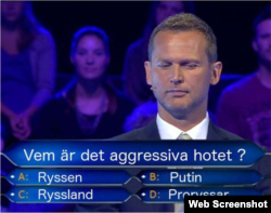 Автори звіту пишуть, що у Швеції у Facebook-спільноті Exponera russofobin поширили зображення яке мало б показати, що популярне телешоу-вікторина – русофобське. На цьому зображенні ведучий шоу запитує «Хто є агресивною загрозою?». А варіантами відповідей є: «росіяни», «Росія», «Путін», «люди з проросійськими поглядами». Насправді, співробітник прес-служби телеканалу підтвердив, що це – підробка. Але ця історія нагадала авторам звіту іншу історію із попередніх оглядів, де у російському опитуванні було дуже мало варіантів відповідей на запитання: «Чи є ЄС поганим для Росії».