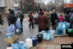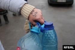 Ближе к полудню в очереди за водой больше ста человек. Люди говорят, что на всех не хватит, но все равно не расходятся. Хотя та вода, что развозят техническая. И не самого лучшего качества: мутная и воняет, говорят люди.