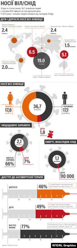 1 грудня – Всесвітній день боротьби зі СНІДОМ. За даними Українського центру контролю за соціально небезпечними захворюваннями МОЗ України, за десять місяців 2016 року в Україні зареєстровано більше 13 тисяч нових випадків ВІЛ-інфекції, з них майже 2 з половиною тисячі – діти до 14 років. За оцінками міжнародних експертів, понад 40% інфікованих українців навіть не знають про свій ВІЛ-позитивний статус. Однією з причин, чому Україна залишається серед лідерів у Європі за масштабами поширення цього вірусу, експерти називають невчасну діагностику та недостатню поінформованість громадян.
