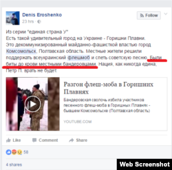 У російських ЗМІ та соцмережах поширили інформацію, що бійці ЗСУ начебто побили учасників «пісенного флешмобу» у місті Горішні Плавні, що на Полтавщині. У поліції Полтавщини таку інформацію у коментарі для Радіо Свобода спростували.