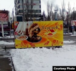 – Война на Донбассе очень часто граничит с бизнесом и в рекламной сфере. Из концепции «русского мира» вышел ряд брендов, которые теперь используются как в пропаганде, так и в коммерции. К таковым относится магазин «Блокпост» в одном из центральных районов Донецка, который активно использует военную тематику не только в названии, но и в оформлении помещения: сам магазин окрашен в цвет камуфляжной сетки. Однако ассортимент товаров здесь не имеет ничего общего с войной: это в основном продукты, а также корма для животных.