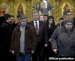Після цієї зустрічі всі її учасники перемістилися до Михайлівського собору, де очільник Української православної церкви Київського патріархату Філарет провів богослужіння в пам'ять про Героїв Небесної сотні.