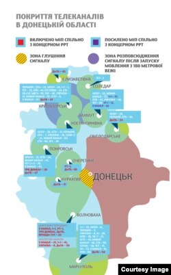 Адже, на жаль, захоплені зараз вежі на окупованих територіях в Донецьку (360 метрів) і Луганську (180 метрів) дозволяють їм транслювати набагато глибше на нашу територію. Донецька вежа дозволяє мовити на 100 кілометрів, Луганська вежа – на 30 кілометрів.