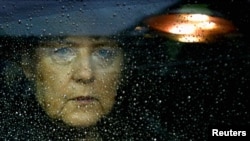 5. Канцлер Німеччини Ангела Меркель приїхала у Брюссель до Ради Європи для розподілу бюджету ЄС, листопад 2012 року. Тоді Німеччина і Великобританія виступали за скорочення витрат країн ЄС.