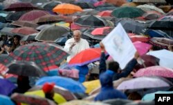 3. Папа Римський Франциск розмовляє з паствою під час своєї щотижневої аудієнції на площі Святого Петра у Ватикані. Травень 2013 року.