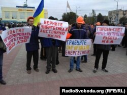 Пізніше колона «азотівців» перемістилася до будівлі обласної адміністрації. Там на них вже чекали 300 працівників «Луганського енергетичного об’єднання» та кілька менш чисельних делегацій від газовиків, шахтарів об’єднання «Лисичанськвугілля», працівників склозаводу «Пролетарій». Всі ці підприємства мають фінансові проблеми. Зокрема, енергетики через багатомільярдні борги, викликані безоплатними поставками електрики на непідконтрольну територію, зараз перебувають під фінансовими санкціями від НКРЕ.