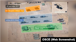 Так, 22 вересня безпілотник ОБСЄ зняв поза зоною постійного зберігання озброєнь сепаратистів чотири самохідні артилерійські установки 2С1 «Гвоздика» (122 міліметри ), шість гаубиць Д-30 (122 міліметри ) і шість протитанкових гармат МТ-12 (100 міліметри ).