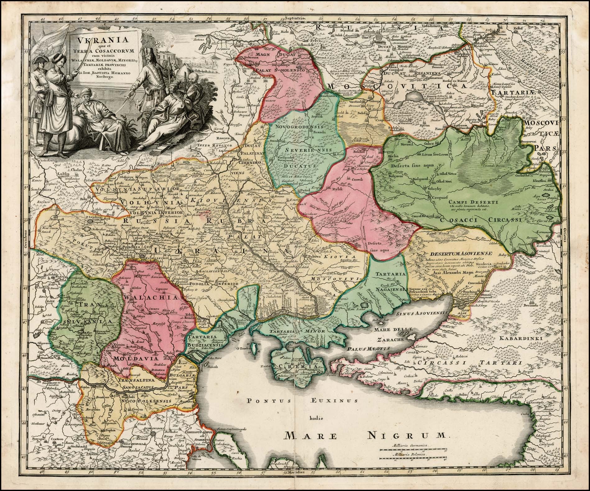 Нова редакція (1720 року) мапи України Йоганна-Баптиста Гоманна, яка була видана в Нюрнберзі у 1716 році. Назва мапи: «Vkrania que terra Cosaccorvm...» («Україна – територія козаків…»). На самій мапі в лівій частині є напис UKRAINA, а поряд RUSSIA RUBRA. А за межами основних частин мапи, які виділені різними кольорами, зверху у правій частині на білому тлі є напис RUSSIA. (Щоб відкрити мапу у більшому форматі, натисніть на зображення. Відкриється у новому вікні)