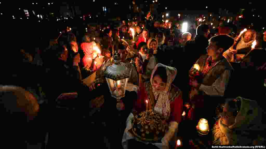 8 квітня в Україні відзначають свято Воскресіння Христа. Напередодні «благодатний вогонь» із Єрусалима привезли до Києва. На території усієї України пройшли вечірні церковні служби. Фотокореспондент Радіо Свобода разом з вірянами побував у Патріаршому кафедральному соборі святого Володимира в Києві, де відбулися урочисті богослужіння, приурочені до свята Великодня. Освячувати кошики з писанками і крашанками почали ще напередодні – ввечері 7 квітня. Приблизно о 23:00 почалася урочиста молитва, а опівночі священнослужителі обійшли Володимирський собор традиційною хресною ходою. Разом із вірянами в службі взяли участь президент України Петро Порошенко разом із сім’єю.