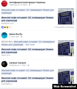 Заголовки і повідомлення про «ліквідацію» безвізового режиму також поширили у соцмережах.