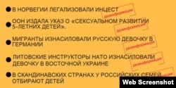 Минулого тижня подібна дезінформація була опублікована в Грузії. У матеріалах стверджувалося, що в Норвегії легалізували інцест, і що ООН видала новий указ про «сексуальний розвиток п'ятирічних дітей».