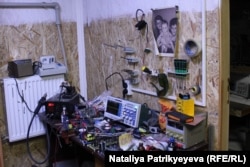 Леонид Кизяев в гаражном кооперативе имеет собственную мастерскую: здесь он делает рисунки портретов на могильных плитах.