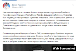 Цікаво, що активний у соцмережах Денис Пушилін написав пост зі співчуттями після смерті Йосипа Кобзона, але нічого не написав з приводу загибелі Олександра Захарченка. Для ЗМІ він сказав, що «Україна несе відповість за це вбивство».