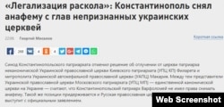 Видання Russia Today винесло в заголовок публікації про події в українському православ’ї цитату прес-секретаря Російської православної церкви Олександра Волкова, який назвав зняття анафеми з голови УПЦ КП патріарха Філарета «легалізацією розколу».