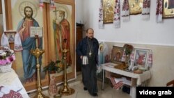 Отець Роман, вибачаючись за тісноту, пригощає нас чаєм прямо біля входу. Тут моляться за створення єдиної помісної української православної церкви.