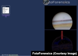 Перевірка за допомогою сервісу Fotoforensics, який дозволяє розпізнавати фальшиві знімки, показала, що перед публікацією фото було зменшене щонайменше в половину від свого оригінального розміру й містить елементи домальовувань. Тобто має ознаки підробки.