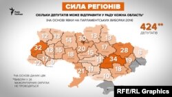 Радіо Свобода порахувало кількість депутатів, яких може обрати до Верховної Ради кожна область. Ця кількість потенційна, адже вирахувана за умови, що на виборчі дільниці мають прийти всі зареєстровані виборці у кожній області. Розрахунки зроблені включно із мажоритарними округами. У 26 округах, які розташовані на тимчасово окупованих територіях, вибори не відбудуться. Загалом до Ради потрапить 424 депутати.