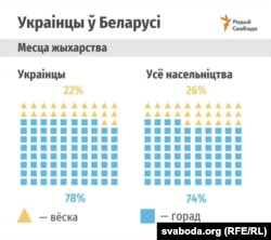 Графік в оригіналі білоруською мовою – українці у Білорусі за місцем проживання (село чи місто):