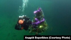 На Дніпропетровщині на дні кар’єра дайвери встановили підводну ялинку. Про це Радіо Свобода в понеділок розповів один з ініціаторів проекту, інструктор з дайвінгу Андрій Воробйов.