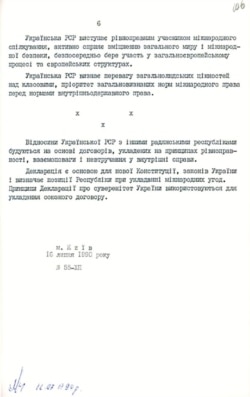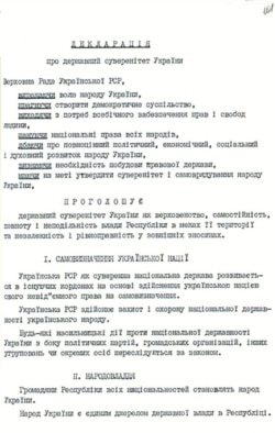 30 років тому 16 липня 1990 року Верховна Рада тоді ще Української Радянської Соціалістичної Республіки ухвалила Декларацію про державний суверенітет України. У преамбулі цього документа зазначено: