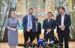 Після оголошення переможниці перед фракцією Володимир Зеленський особисто вийшов разом із нею до журналістів.