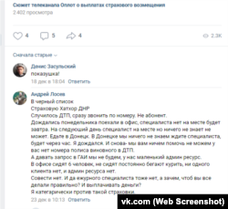 «Случилось ДТП, сразу звоню по номеру. Не абонент. Дождались понедельника поехали в офис, специалиста нет на месте будет завтра. На следующий день – езжайте в Донецк. В Донецке мы ничего не знаем ждите специалиста, будет через час. Мы вам ничем помочь не можем, у вас нет номера полиса виновного в ДТП. А давать запрос в ГАИ мы не будем, у нас маленький админресурс», – рассказывает один из пострадавших ДТП.