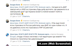 Часть негативных отзывов пользователи оставляют на страницах агентов «Хатхора». Так один из них пишет: «Сегодня есть «ДНР», завтра нету, а 3000 за страховку будь добр выплати, где уверенность в завтрашнем дне? Украина может в любой момент пойти в наступление! Наш «ДНР» это хрен пойми что. Я не удивлюсь, если эта страховка в «ЛНР» не работает».