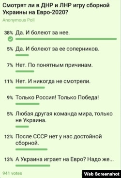 Украина в первом матче европейского чемпионата по футболу сыграла против Нидерландов 2:3, а Россия стартовала с 0:3 против Бельгии. Как эти матчи смотрят на оккупированной российскими гибридными силами части востока Украины? За кого болеют в Донецке, принимавшем Европервенство в 2012-м?
